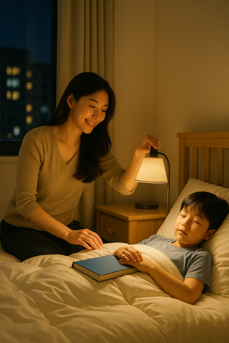 수면 습관을 바꾸기 위해서는 아이의 스마트폰과 태블릿 사용 시간 조절이 필수다. 잠자기 한 시간 전에는 화면 사용을 줄이고, 방 조명을 조금 어둡게 조절해 몸이 자연스럽게 “잘 시간”임을 인식하도록 돕는 것이 좋다. 파란빛이 강한 화면은 뇌에 여전히 낮이라고 착각하게 만들어, 수면 호르몬인 멜라토닌 분비를 늦춘다.