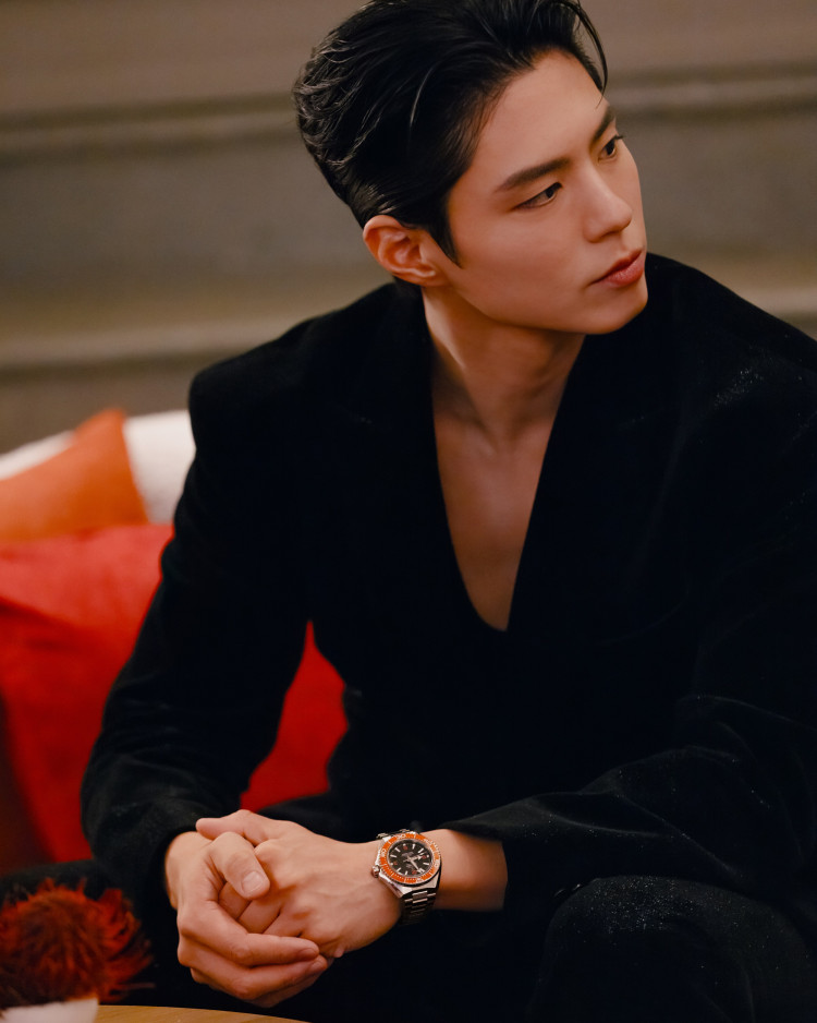 박보검이 착용한 제품은 오메가 플래닛 오션 컬렉션 4세대의 시그니처 컬러 모델인 ‘씨마스터 플래닛 오션 오렌지’다. 매트한 오렌지 컬러 다이얼에 바니시 처리된 아라비아 숫자를 적용하고, 화이트 하이브리드 세라믹 다이빙 스케일이 더해진 새로운 오렌지 세라믹 베젤(ZrO₂)을 탑재해 스포티하면서도 강렬한 매력을 강조했다. 스트랩은 스테인리스 스틸 브레이슬릿을 비롯해 블랙 및 오렌지 러버 스트랩까지 선택 가능해 스타일에 따라 다양한 연출이 가능하다.