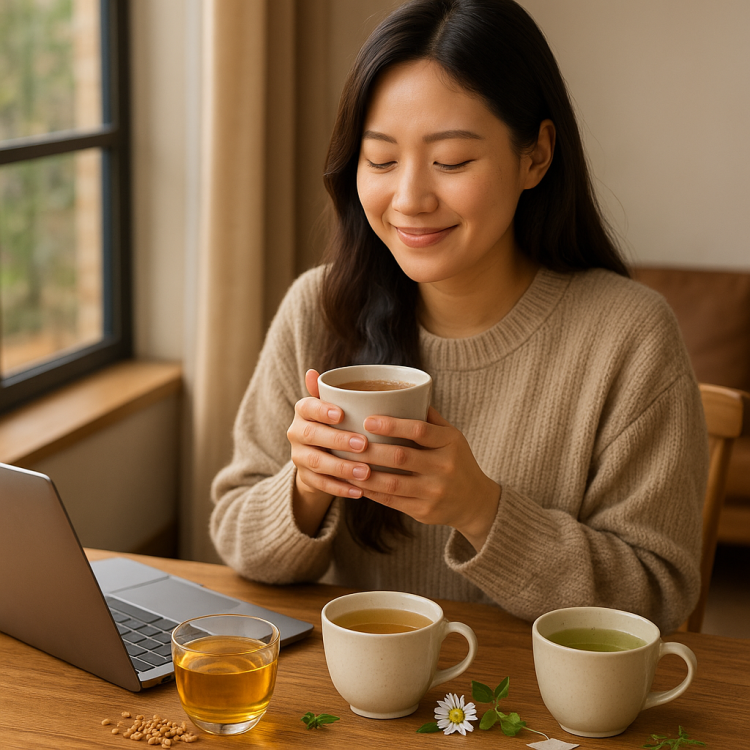 첫 번째 후보는 녹차 계열 중에서도 상대적으로 카페인이 적은 호지차, 현미녹차 등입니다. 일반적인 녹차 한 컵에는 약 30~50mg의 카페인이 들어 있지만, 볶은 차인 호지차나 현미녹차는 그보다 함량이 낮은 편이라 저녁에 마시기 비교적 부담이 덜합니다. 대신 다이어트나 항산화 효과를 기대하며 여러 잔을 연달아 마시는 것은 피하는 것이 좋습니다.