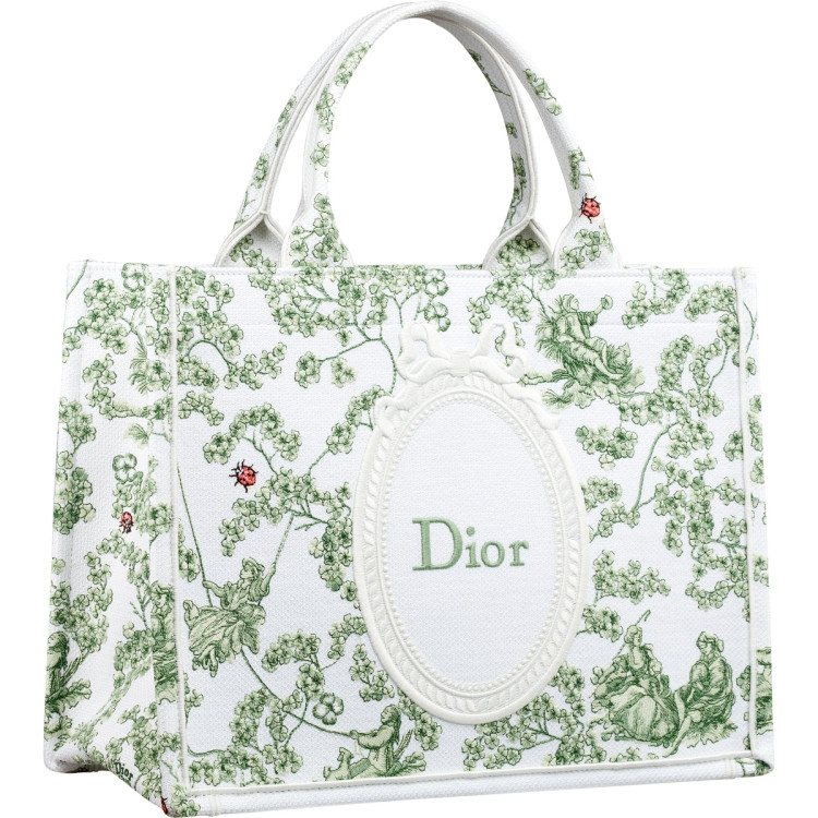 18세기 목가적인 풍경에서 영감을 받은 아이코닉한 toile de Jouy 모티브는 네잎클로버가 장식된 서정적인 버전으로 새롭게 탄생했다. 은은하면서도 우아한 스케치는 Lady Dior와 Dior Book Tote 백을 비롯해 디올 로고가 더해진 실크 스카프와 미차(Mitzah)에 적용되어 컬렉션 전반에 걸쳐 존재감을 드러낸다.