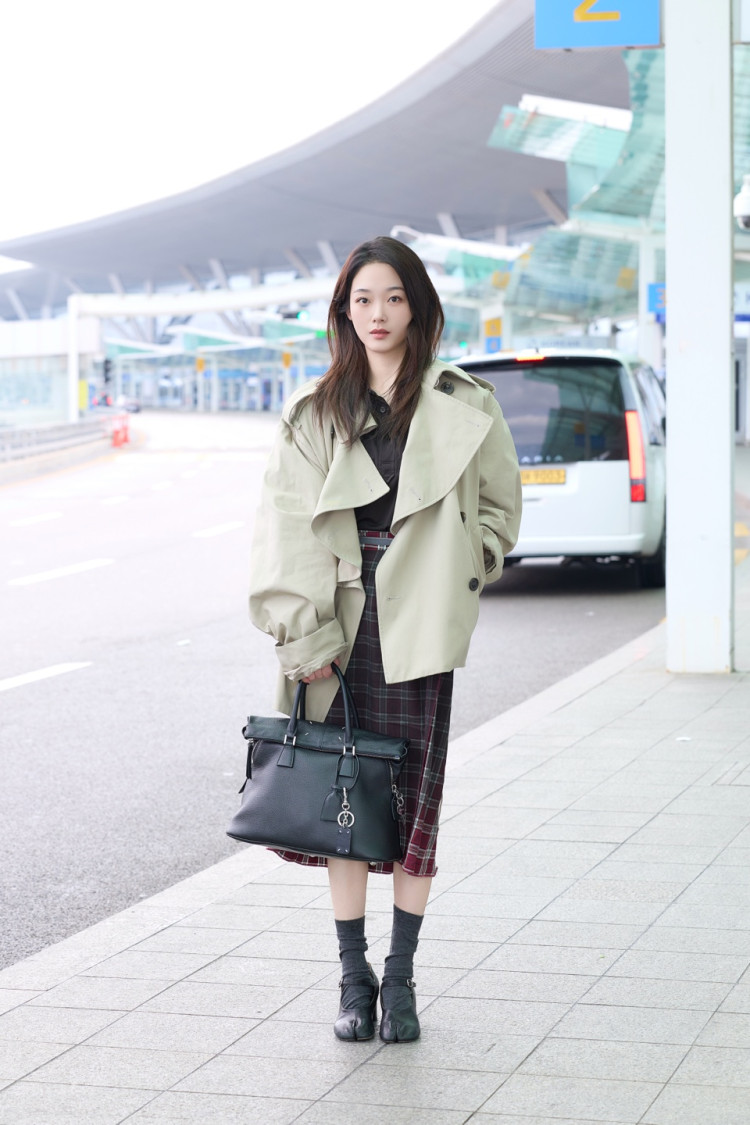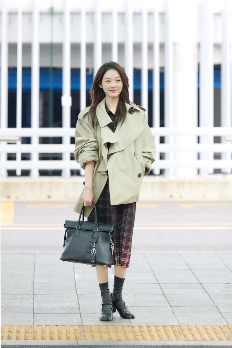 이유미는 러플 카라 디테일이 돋보이는 크롭 트렌치코트에 레드 컬러 체크 스커트를 매치해 경쾌하면서도 감각적인 스타일을 완성했으며, 브랜드 시그니처인 타비 메리제인 슈즈와 그레인 카프레더 소재의 소프트 5AC 미디엄 백으로 세련된 포인트를 더했다.