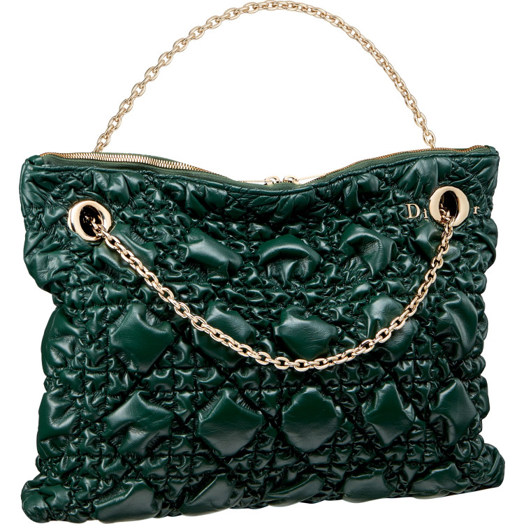 입체적인 그래픽이 돋보이는 모던한 실루엣과 함께 섬세한 크링클 그레인 디테일이 살아 있는 가죽으로 제작돼 독특한 텍스처를 자아낸다. 또한 풍성한 볼륨감과 유연한 라인이 만들어내는 대비는 빛을 자연스럽게 포착하며 양각 효과를 강조해 매혹적인 존재감을 보여준다. 여기에 체인 아일릿과 조화를 이루는 섬세한 ‘Dior’ 시그니처 디테일이 더해져 브랜드의 아이덴티티를 한층 강조하며 완성도를 높였다.